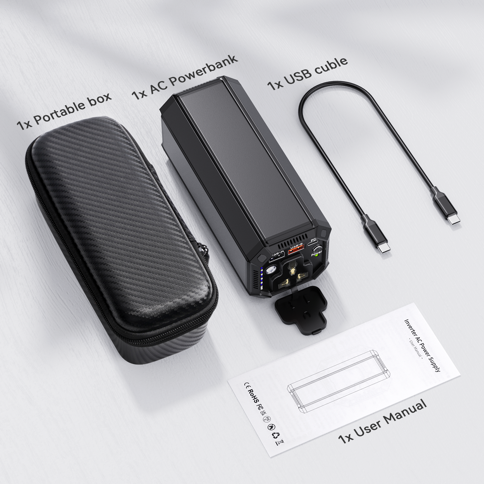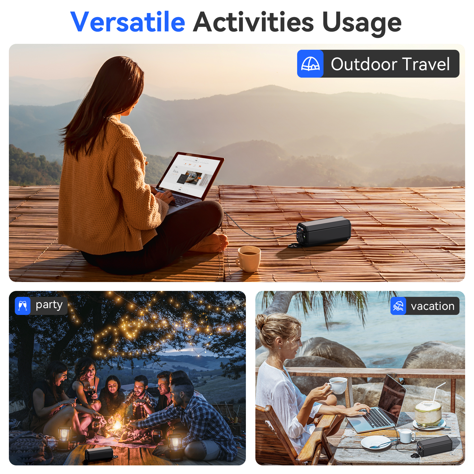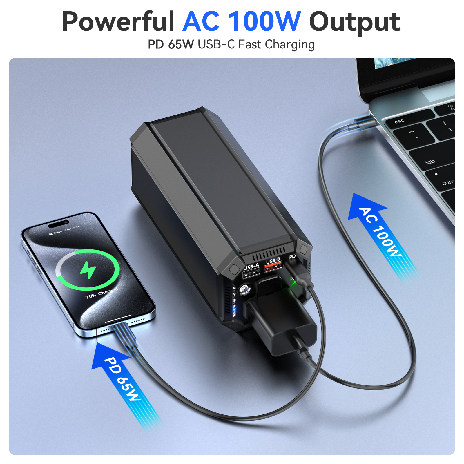 Portable AC Power Bank: The AC outlet up to 100W, which can meet the charging and on-load needs of electrical appliances less than 100W. Don't worry about wall plugs limiting your power needs, charge your device anytime, anywhere. it is an ideal necessity for outdoor activities, hurricanes and home emergency power outage.